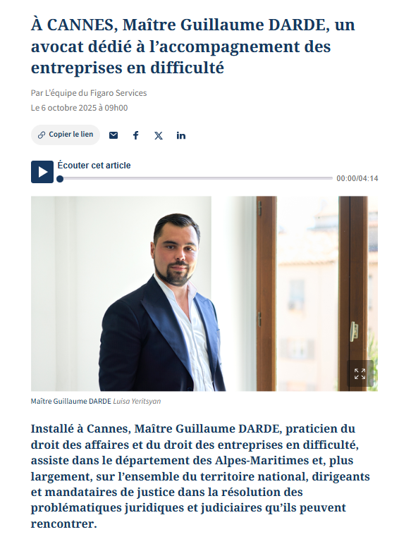 Figaro Economie : Maître Guillaume DARDE, un avocat dédié à l’accompagnement des entreprises en difficulté
